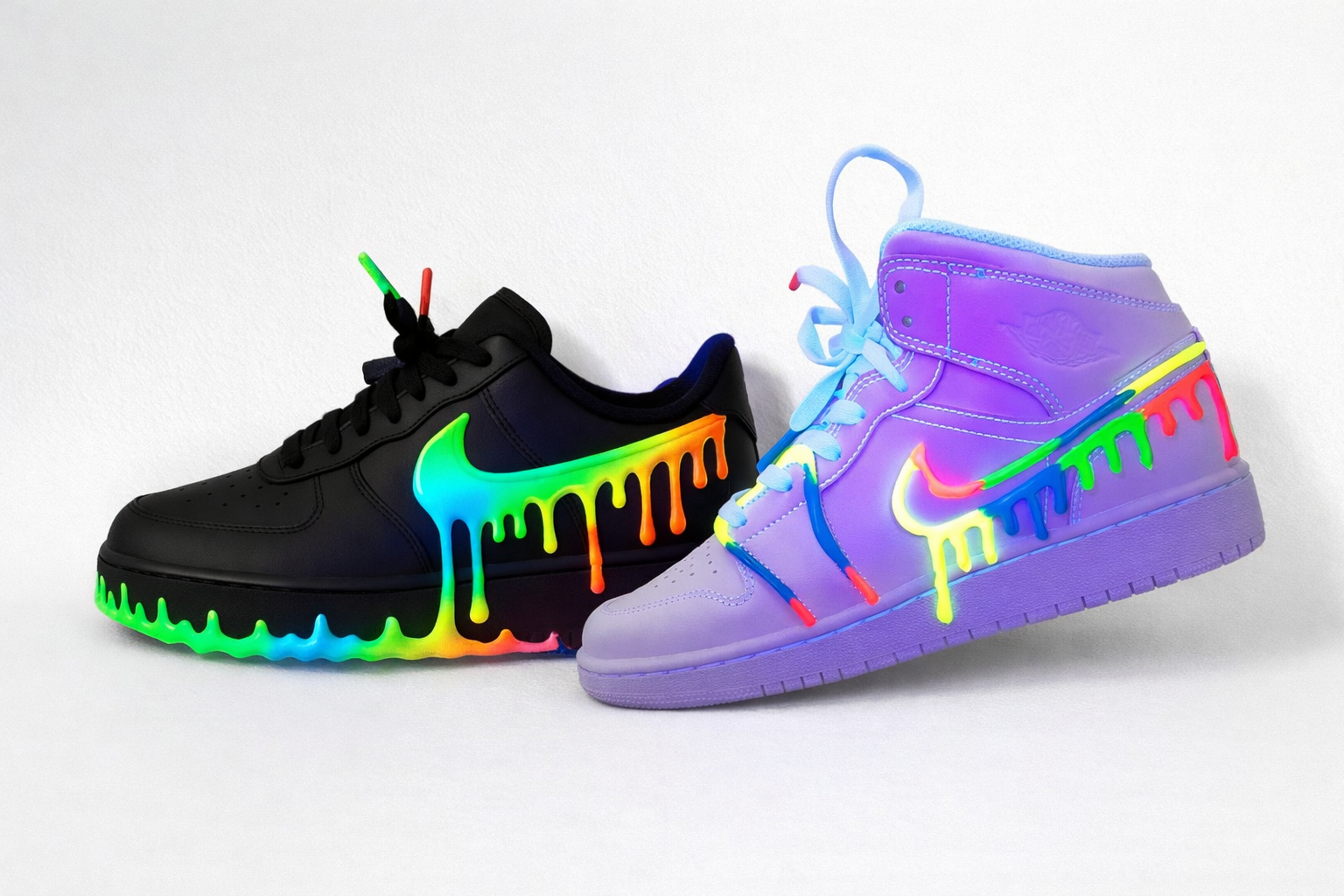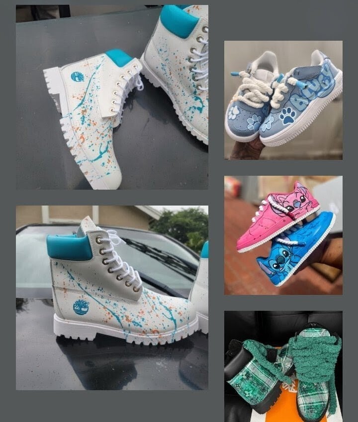 Welcome to the Carleigha Lashae gallery, a vibrant showcase of custom designed shoes where every pair tells a unique story. Prepare to be amazed by hand-painted masterpieces, air-brushed wonders, intricately dipped, wrapped, and dyed creations. We pour our heart into every design, crafting footwear that radiates excitement and happiness. Explore our passion and discover a world where art meets your feet.